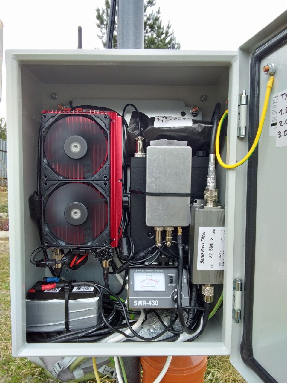 Небольшой апдейт по ящику с сибишным радиошлюзом. В итоге некогда просторный ящик оброс всяческим жирком. Тангенту туда закинул, дабы мощность выходную покрутить у станции если вдруг захочу, бандпасс фильтр вон сбоку торчит, и самое важное - аккумулятор для резервного питания микрокомпа. Потому-что электричество бывает выключают, сельская местность и всем плевать, об SLA даже и не слышали ни разу, ругательства какие )))