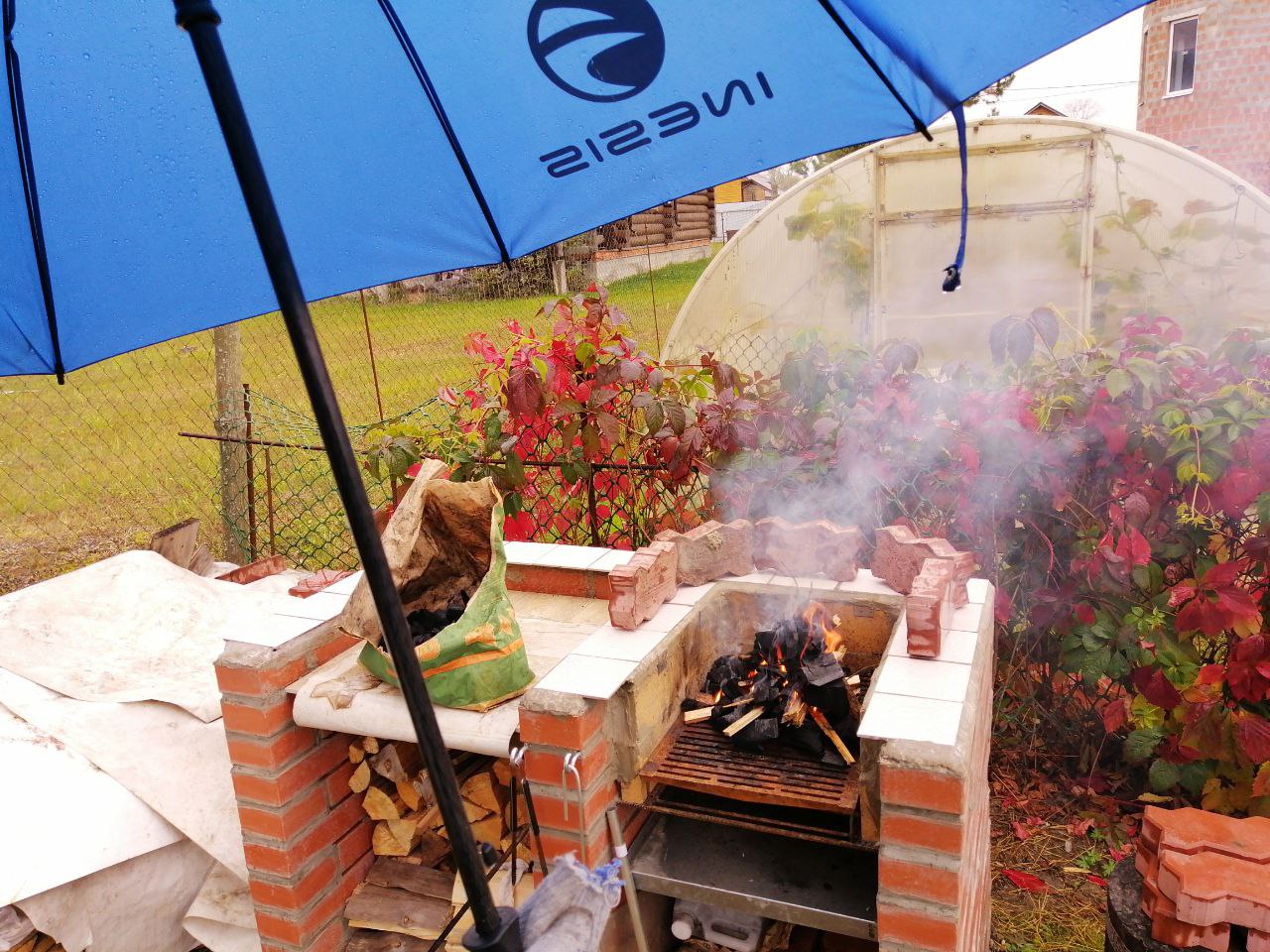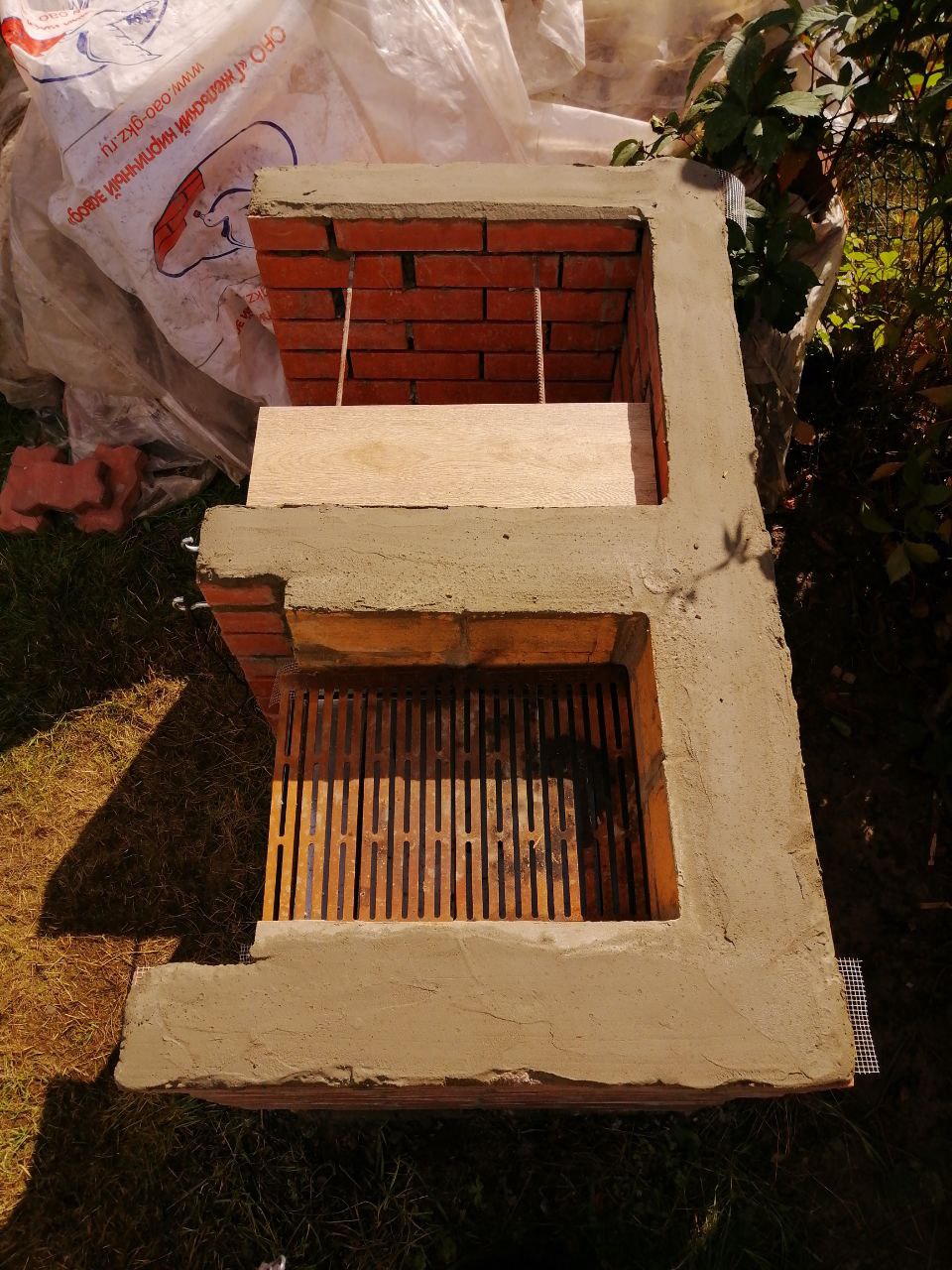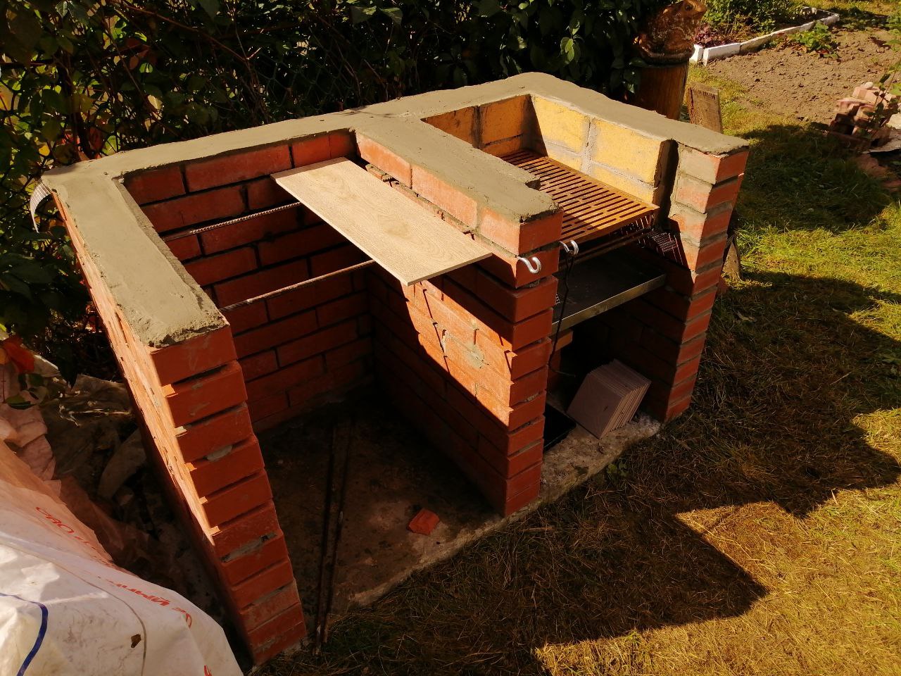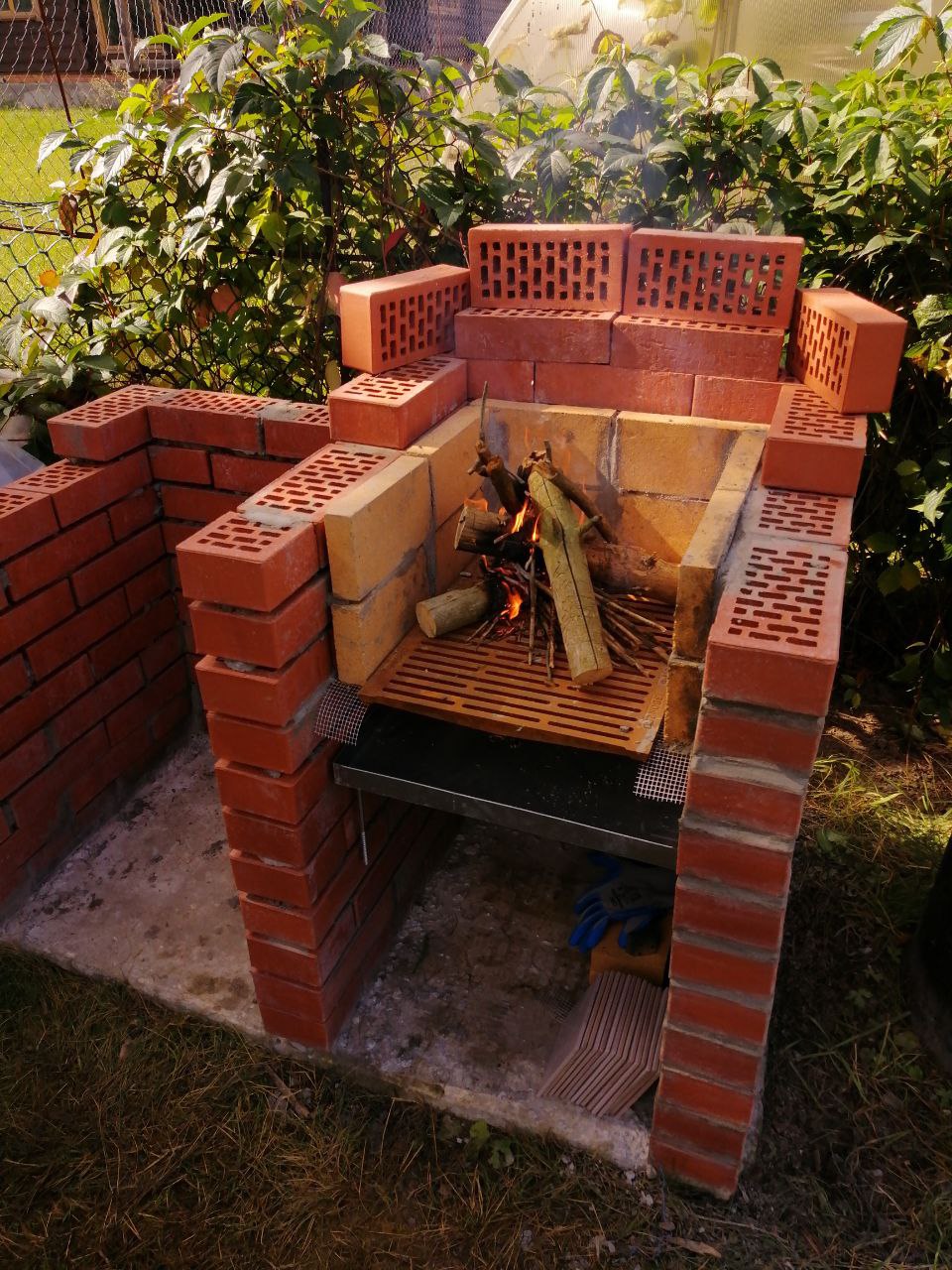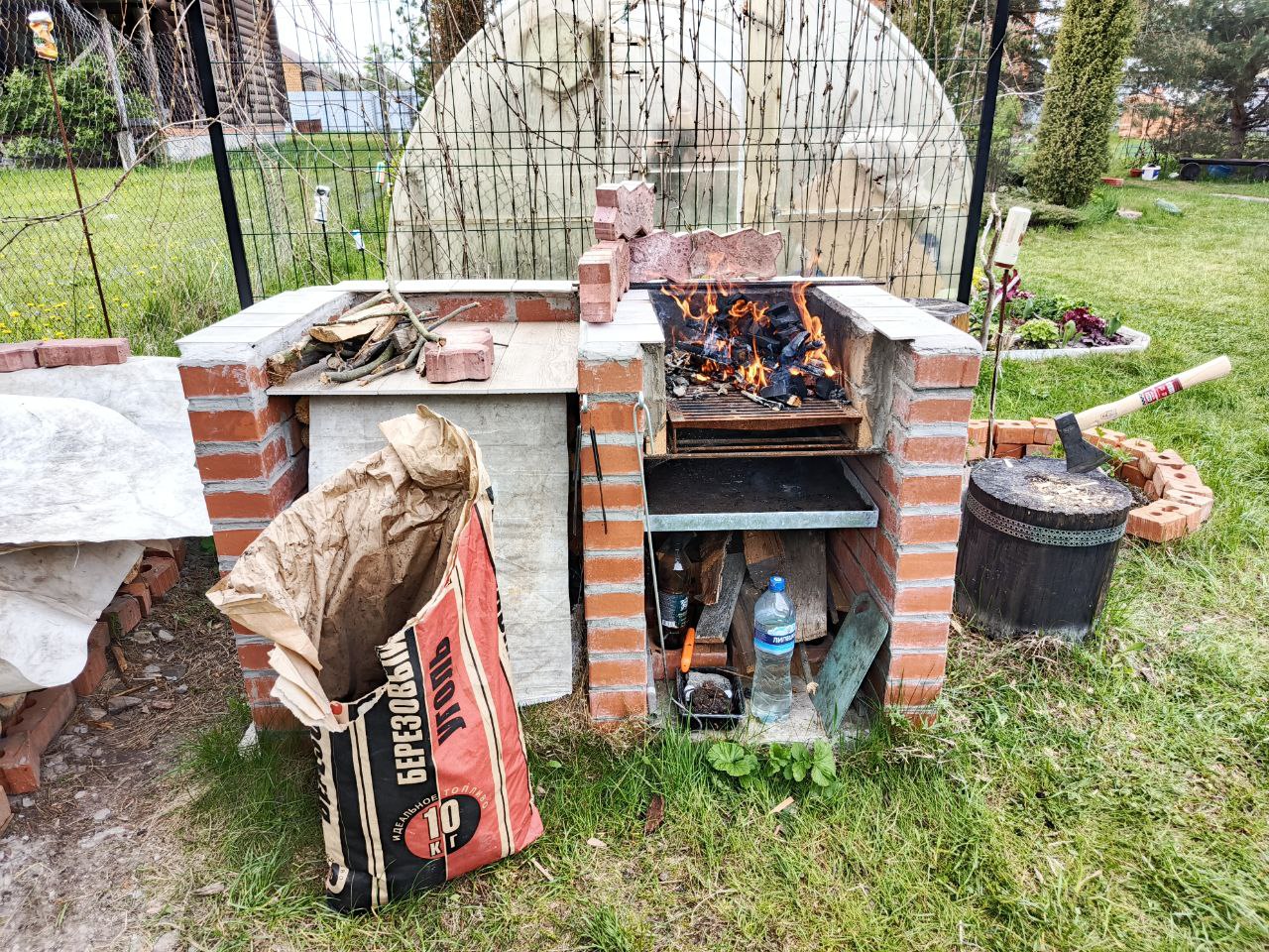 Давно хотел сделать на даче удобное место для жарки мяса. Не вот эти все рукожопые железные мангальчики, а что-то фундаментальное. Собственно вот. Дело было давно, уже пару лет прошло как всё это успешно функционирует.