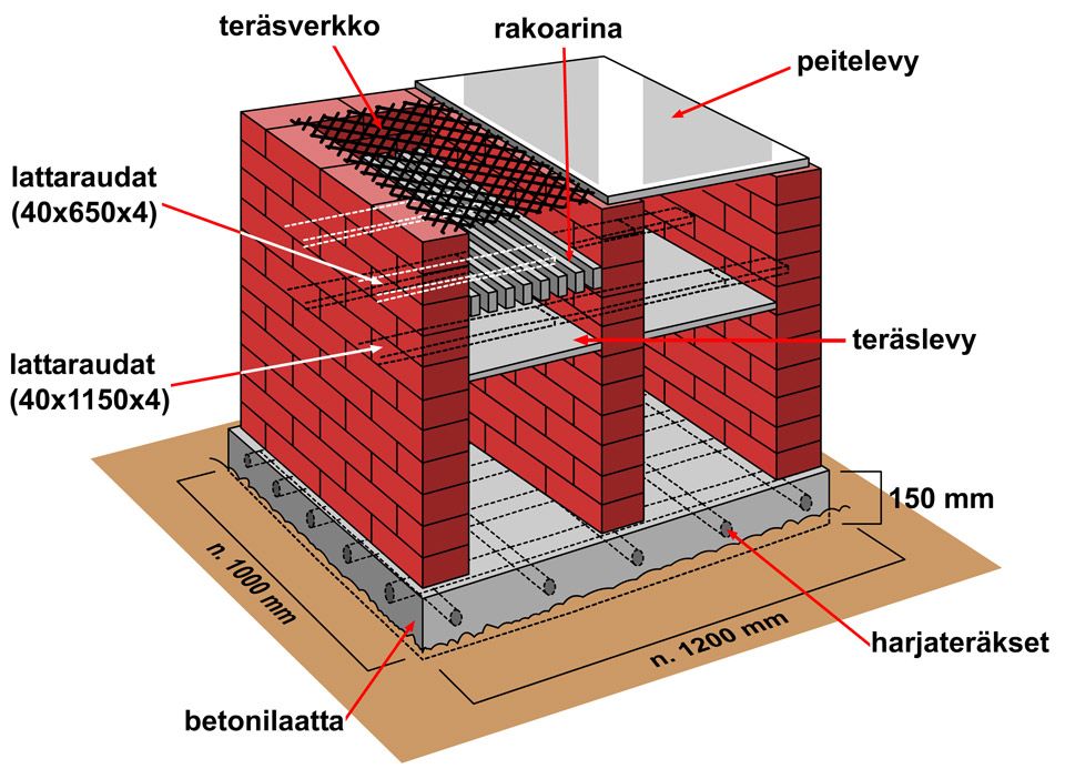 Будучи айтишником - с первого раза получилось кривовато, но из неё не стрелять. Оставлено место под огнеупорный кирпич. Заложены перекладины (арматура) для поддержки поддона, колосника и собственно огнеупорного кирпича. В идеале желтый кирпич должен просто лежать под своим весом, потому-что все вот эти растворы для крепления шамотного кирпича - они ниразу не клей, а скорее для замазки стыков и полостей. Все печи, как я понял, выкладываются внутри в виде свода, чтобы кирпичи просто держались под собственным весом. Но забегая вперёд - несколько скоб всё-таки было сделано в слое под облицовочной плиткой.