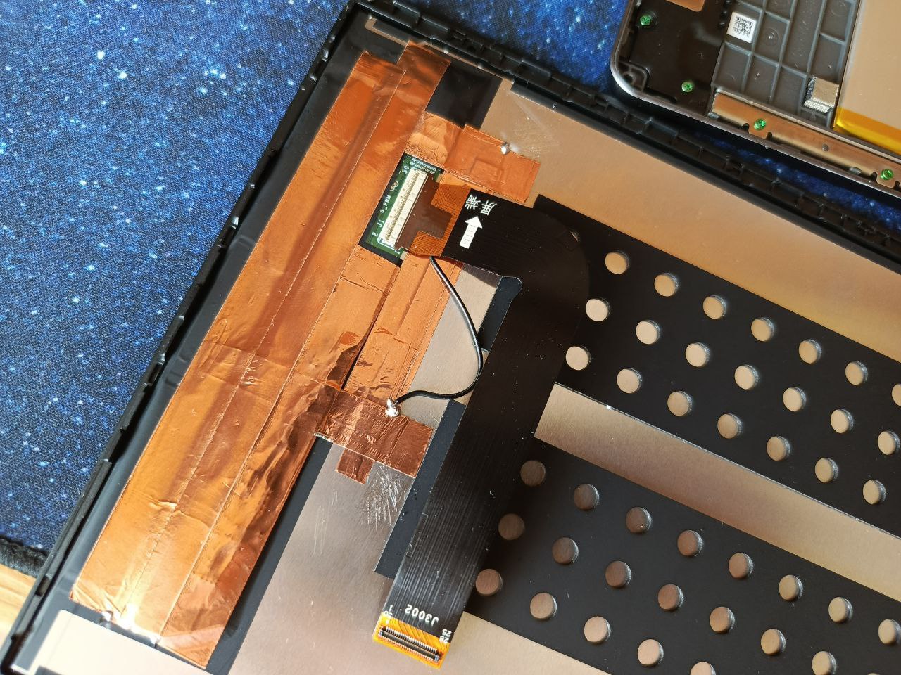 2) As far as you opened your device - you have to detach display cable. Do it from both sides and put apart. You will solder ground wire later. On a display part you have to unlatch connector (latch is on the opposite side from a cable).