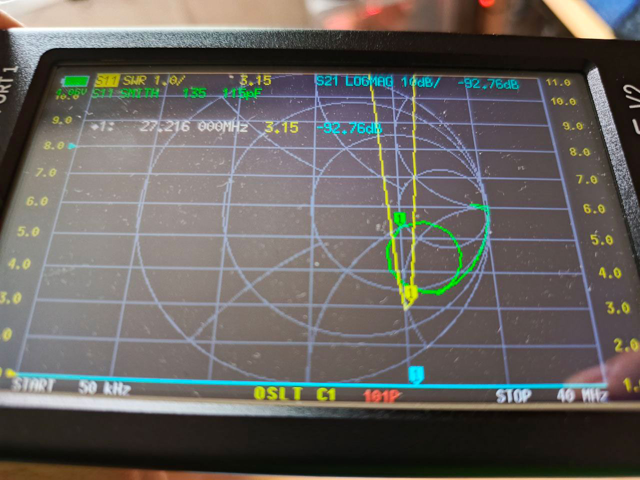 А самая серьезная трата ресурса - это трата времени. Которое опять-же или невозвратные потери или деньги. В данном случае первое. Но методом намотки заведомо большего кол-ва витков, измерением, и последующей отмоткой по 2-3 витка (процесс повторить n раз) случилось таки попадание в район 27.200. Примерно. Учитывая что сверху усядет термоусадка - антенна или немого электрически удлиннится вниз к 27.000 или укоротится вверх к 27.400. Усаживаем, проверяем, уползла вниз. Повезло. Вскрываем, отматываем еще виток и снова усаживаем в термоусадку: