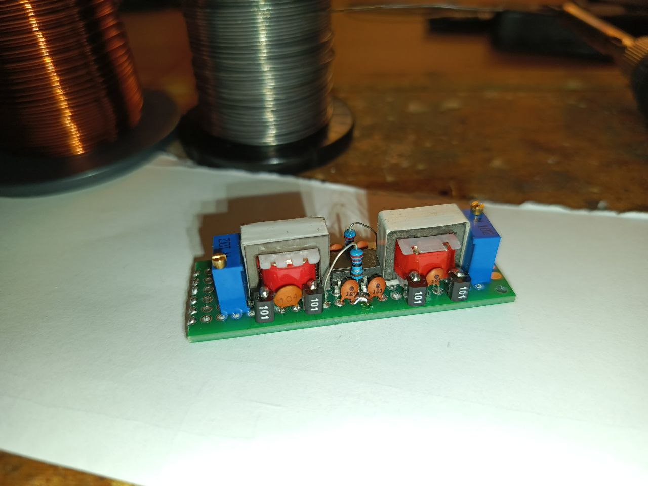 Так как дело будет для сибишки, а это 27 МГц, то шум от микрокомпьютера должен быть вырезан максимально. С учётом доступных в РФ деталей конечно. Трансформаторы естественно китайские. А какими им ещё быть? Дешевые, но дорогие во первых слишком дорогие для задачи, а во вторых ещё и не понятно, насколько они хороши внутри, ибо может быть та-же какаха только в красивой обертке. Суть дешевых трансформаторов скорее не в том чтобы согласовать звуковые линии по сопротивлению, а в том чтобы вырезать максимально всякий высокочастотный мусор. Так как обмотки этих трансофрматоров намотаны поверх друг друга без какой либо изоляции, без секционирования и экранирования - через них вполне таки лезет, хотя какое-то ослабление они всё-еще дают. Детальки с индексом 101 - это так называемые ferrite beads, индуктивности на 100 мкГн, которые по идее должны резать всё высокочастотное дерьмо дюже бодро. В целом, на тестах получилось то что хотелось, но не до конца: